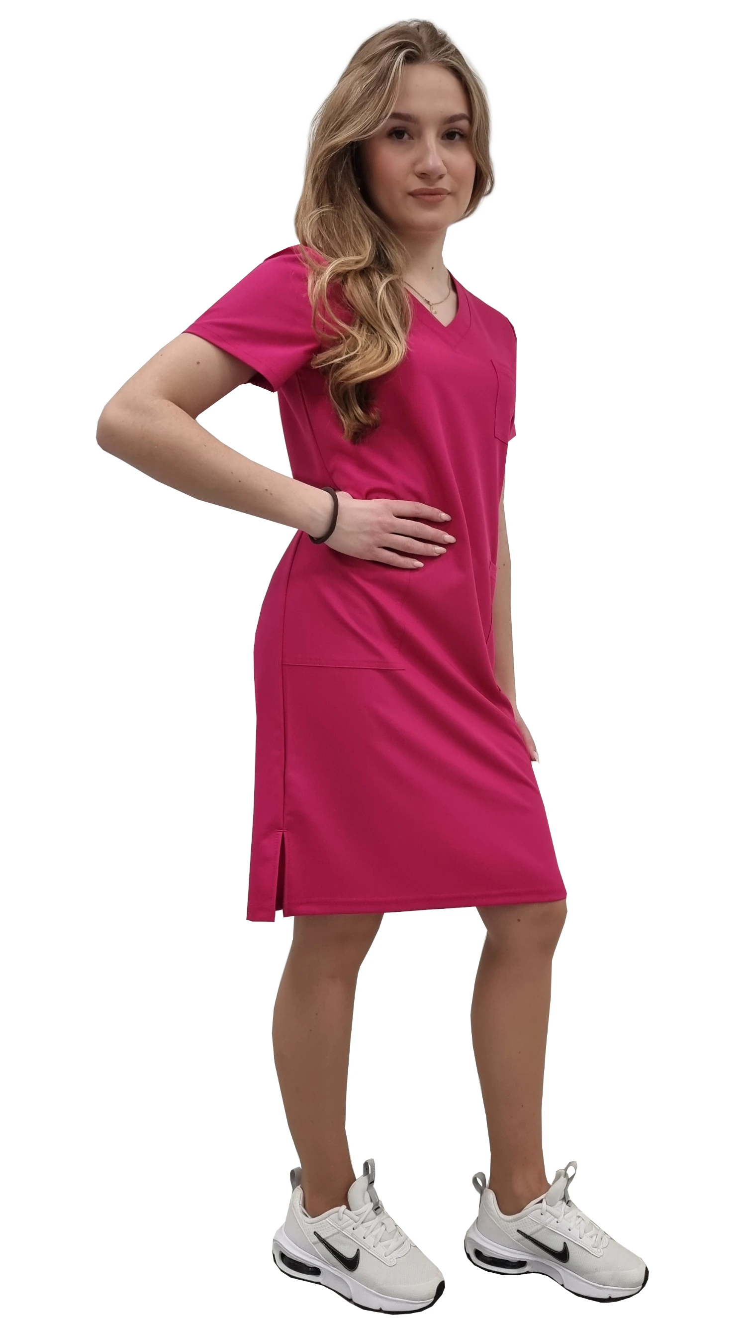 L'abito della collezione CASUAL PREMIUM è uno dei capi immancabili nel guardaroba di ogni donna che lavora nel settore medico e non solo. Ogni prodotto di questa collezione è realizzato in tessuto elasticizzato di alta qualità da 200 g/m2. L'abito è elasticizzato in 4 direzioni, traspirante, leggero, molto piacevole a contatto con la pelle è stato creato per la libertà di movimento e il comfort dei lavoratori, l'aggiunta di viscosa conferisce al tessuto la morbidezza desiderata che rende il tessuto facile da curare. Propone due tasche profonde a livello dei fianchi, una tasca sul petto e uno scollo a V.Le variazioni di colore e il taglio unico faranno risaltare il vostro abito.L'abito è ideale per le giornate che prevedono molta attività fisica al lavoro, offrendo un elevato livello di comfort grazie alla sua permeabilità all'aria. L'elasticità del tessuto vi permetterà di lavorare comodamente, e di adattarvi perfettamente al vostro corpo ogni giorno..