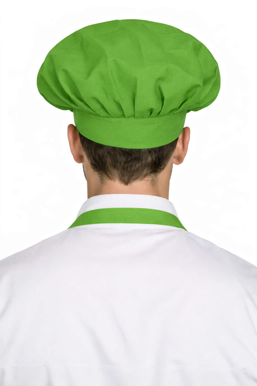 La verde cappello da chef è un elemento di abbigliamento gastronomico elegante e funzionale in classico stile francese. Realizzata in una resistente miscela di poliestere e cotone, garantisce comfort per l'intera giornata lavorativa. Grazie alla regolazione a strappo, si adatta facilmente alla circonferenza della testa e la punta plissettata le conferisce un aspetto professionale. Ideale per chef, ristoranti, catering e scuole di gastronomia che puntano sull'estetica e il comfort del personale.