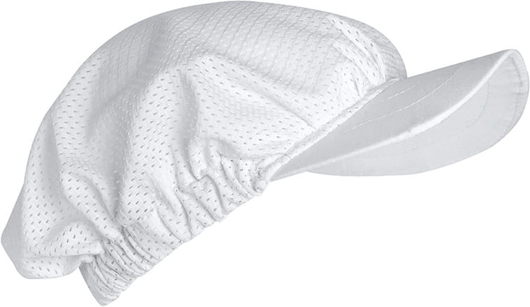 Un elastico flessibile intorno al cappello garantisce una perfetta adattabilità alla circonferenza della testa e tiene i capelli efficacemente sotto il cappello, che è fondamentale dal punto di vista igienico.