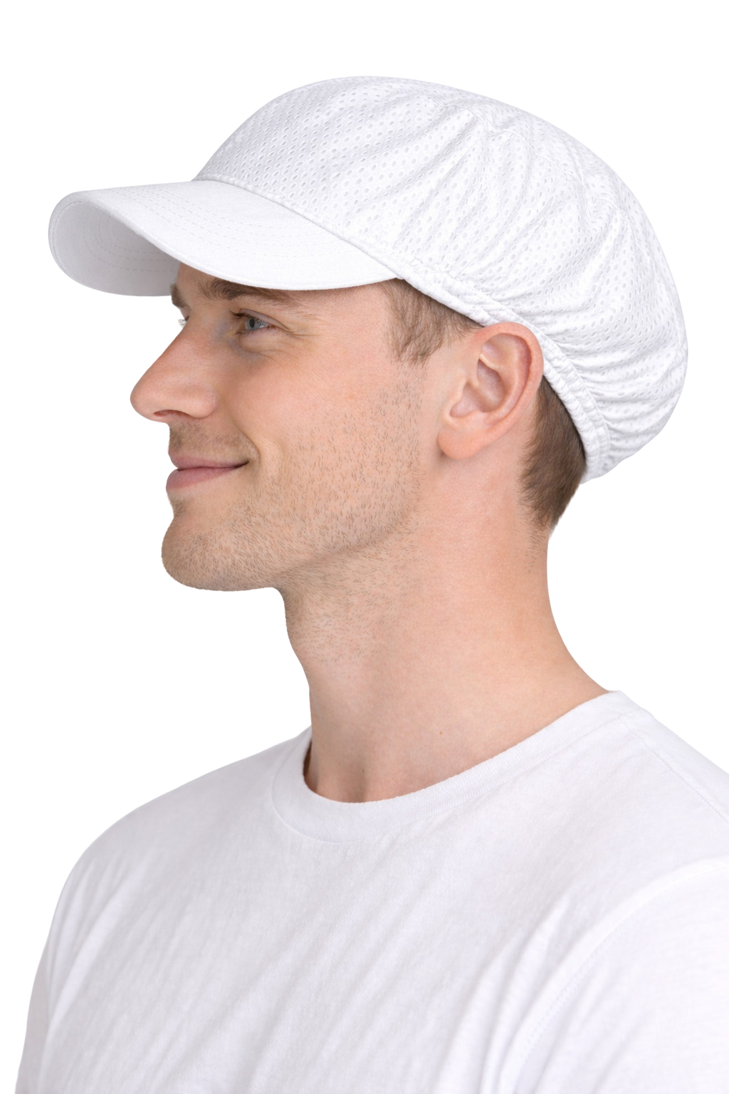 Il Cappello da cucina traspirante con rete è una combinazione di stile, comfort e funzionalità, creato pensando al lavoro in cucina. Ispirato all'eleganza degli anni '20 e allo stile gatsby, è un elemento moderno e allo stesso tempo classico dell'abbigliamento professionale per ristorazione.