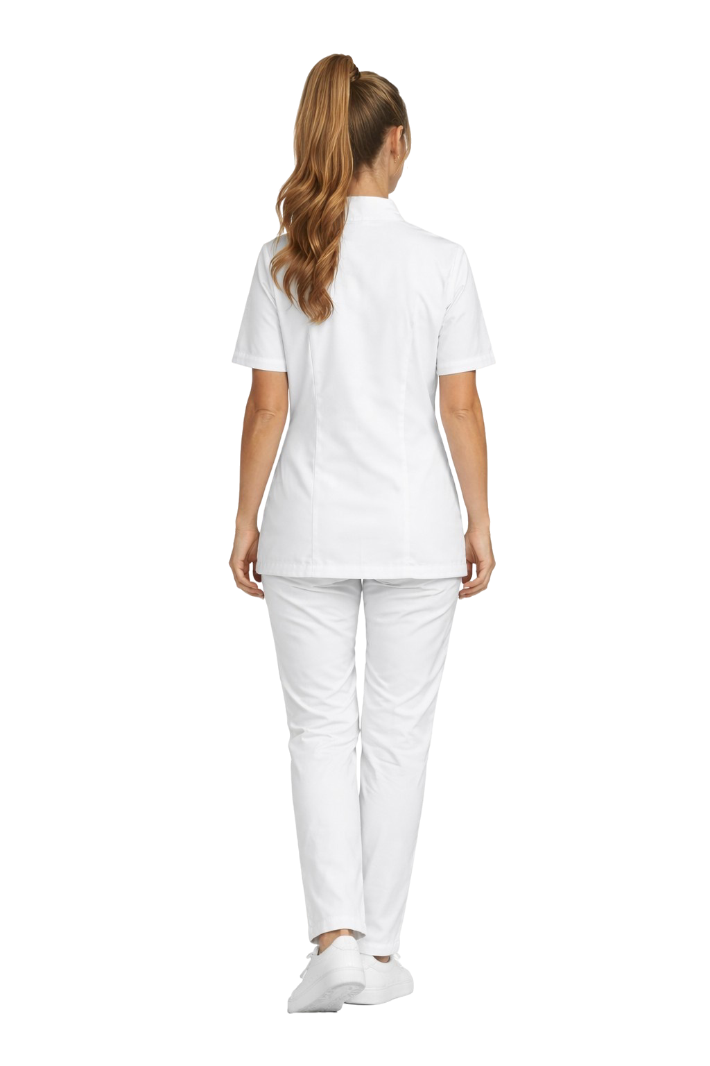 La giacca è stata progettata in uno stile aderente, che si adatta esteticamente alla figura femminile, mantenendo allo stesso tempo piena libertà di movimento. La chiusura con bottoni a pressione permette una vestizione rapida e comoda.