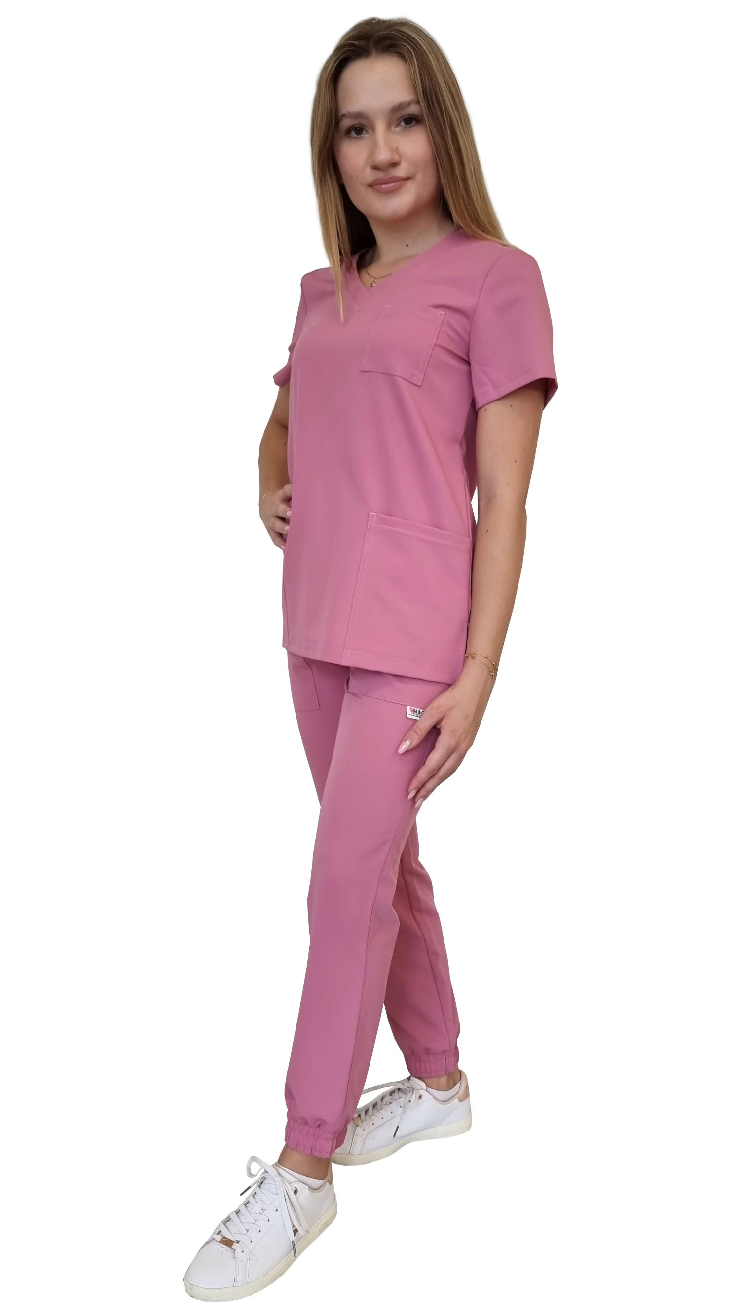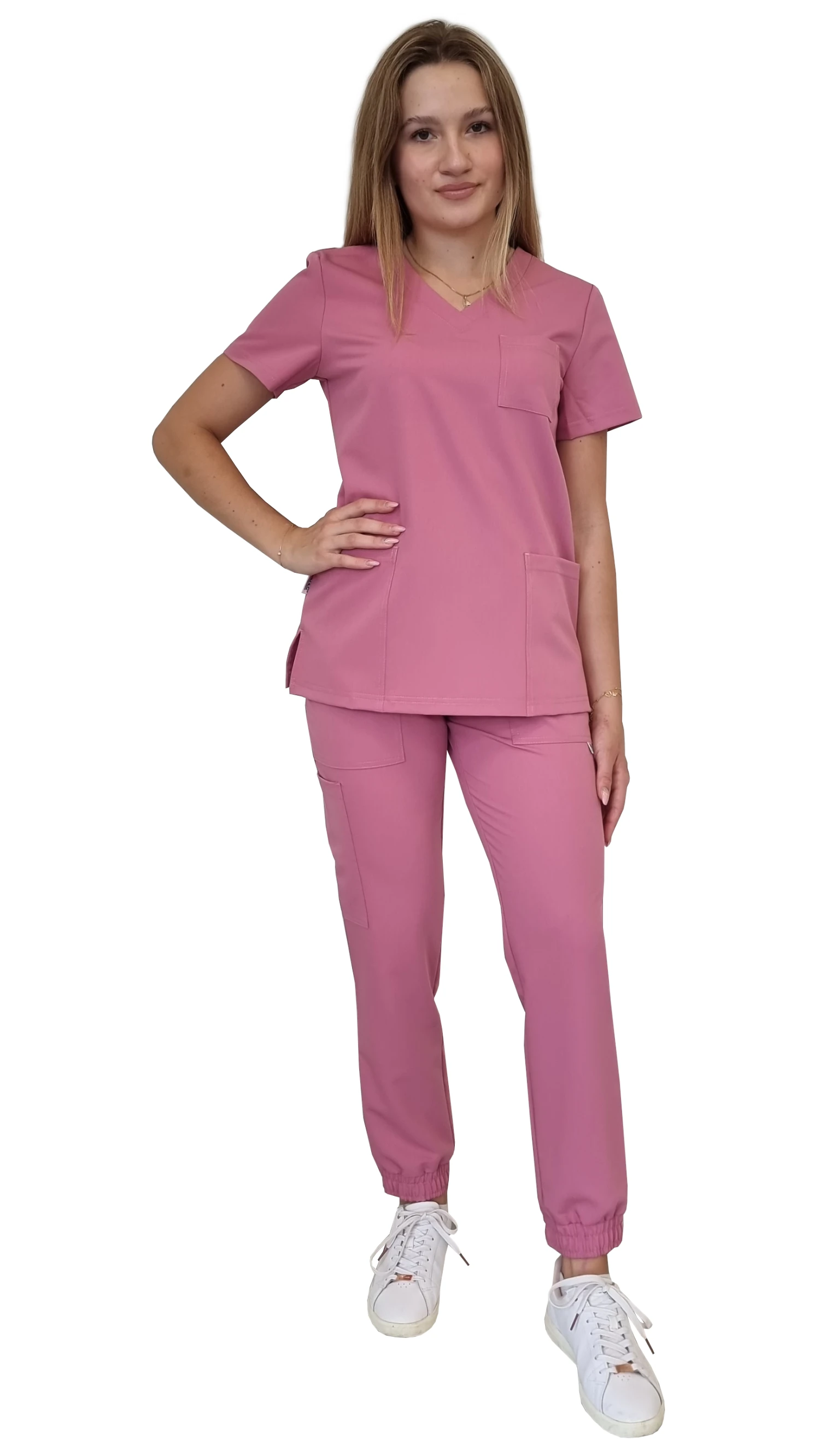 Scopri il nostro completo medico per donna in rosa sporco - scrub CASUAL PREMIUM, perfetto per le professioniste moderne. Realizzato con materiali di alta qualità, garantisce comfort e libertà di movimento durante le lunghe ore di lavoro. Il colore amaranto aggiunge energia e distingue, mentre la rifinitura accurata ti fa sembrare professionale ed elegante. Scegli comfort e stile nel lavoro quotidiano!