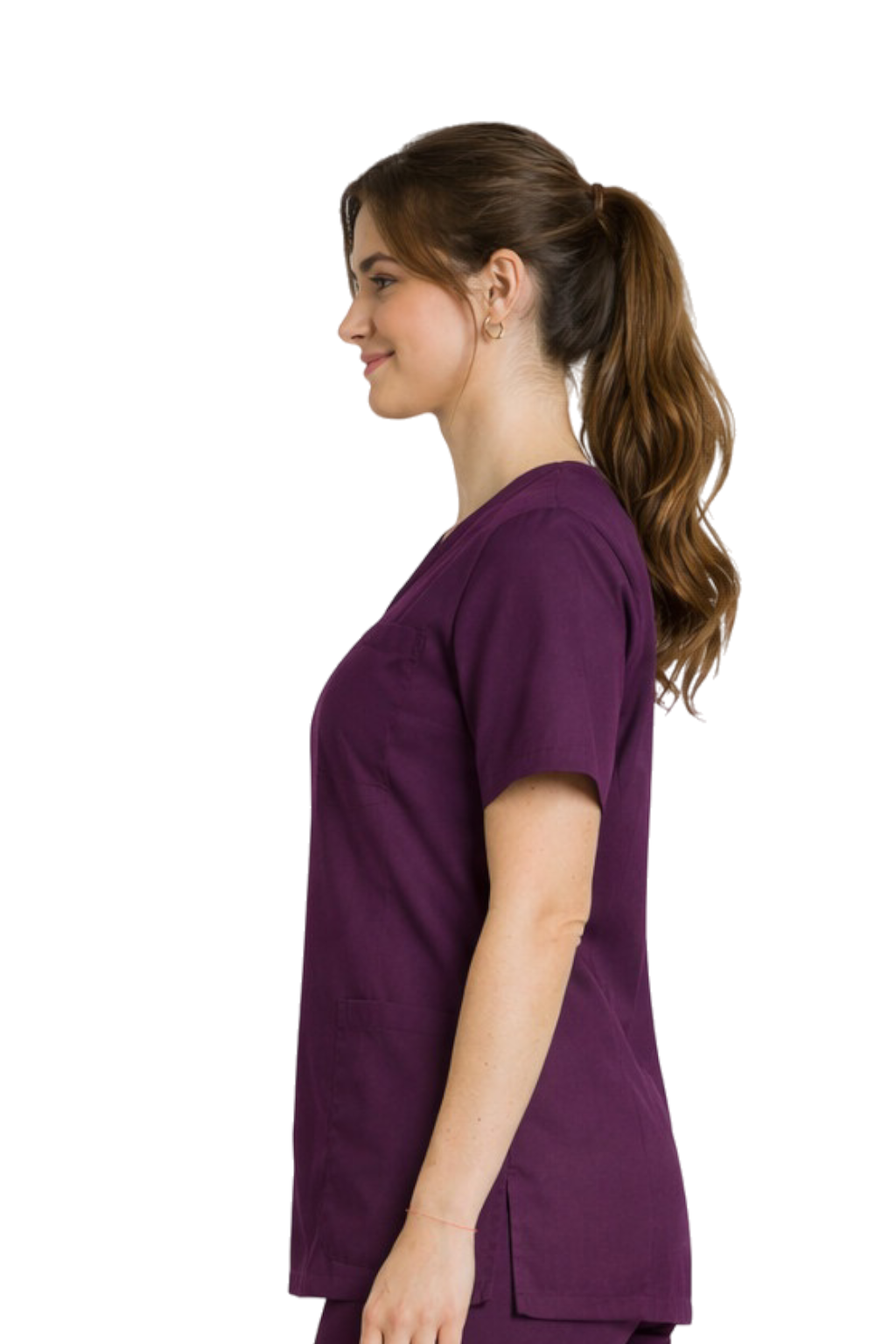 Maglia medica da donna prugna è la scelta ideale per medici, infermiere, fisioterapisti e donne che lavorano nel settore della bellezza - in spa, centri benessere e cliniche di medicina estetica. Progettato specificamente per chirurghi e strumentiste, garantisce il massimo comfort e sicurezza - senza cinghie o cinture inutili che potrebbero interferire con il lavoro.
