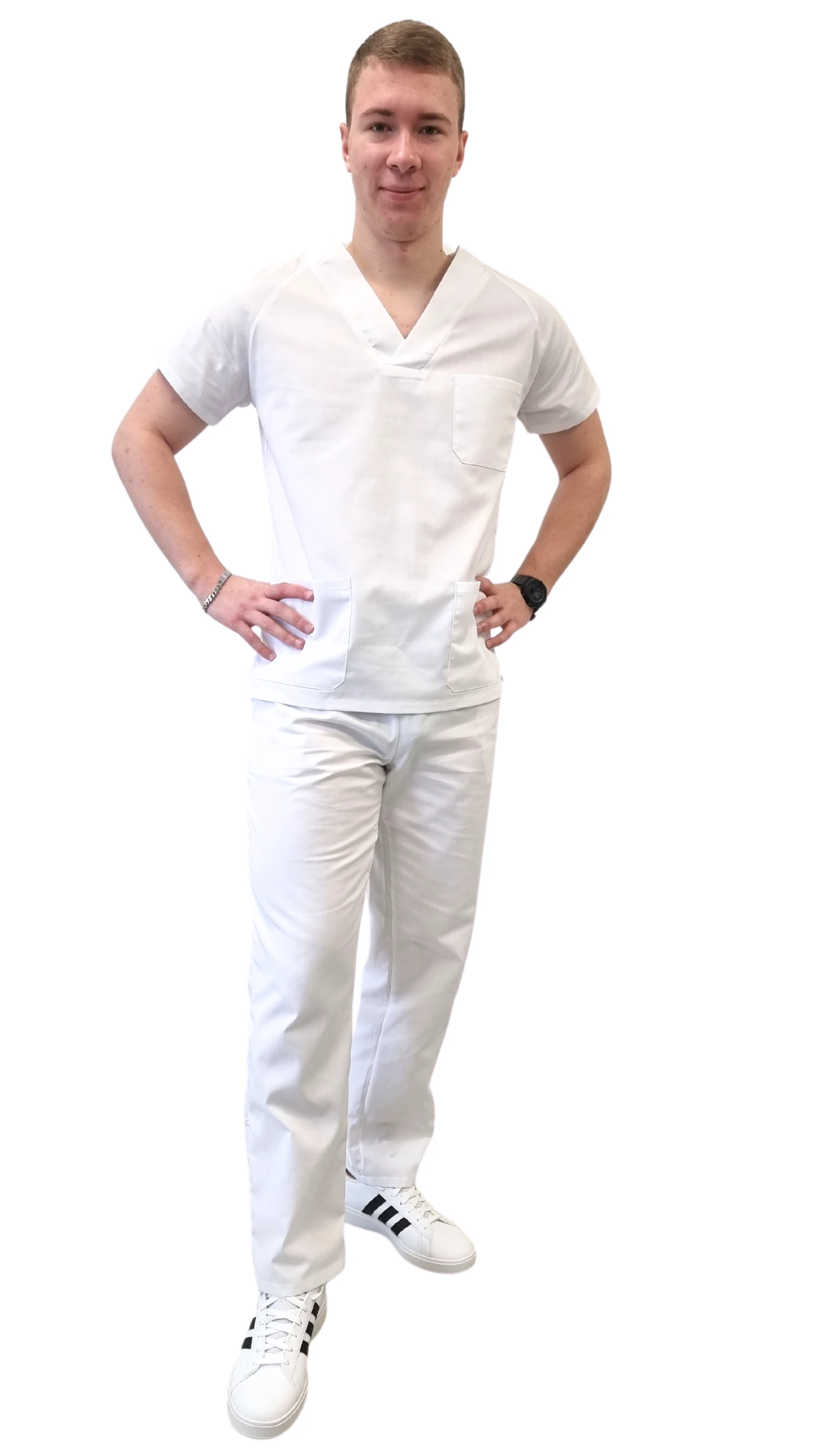 La blusa chirurgica da uomo è un elemento funzionale dell'abbigliamento medico, progettato pensando al comfort e alla comodità durante il lavoro intenso. Il prodotto è destinato a dottori, infermieri, fisioterapisti, veterinari, così come per gli uomini che lavorano nel settore beauty, SPA, wellness e nelle cliniche di medicina estetica.