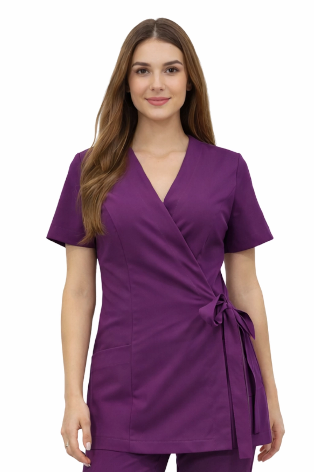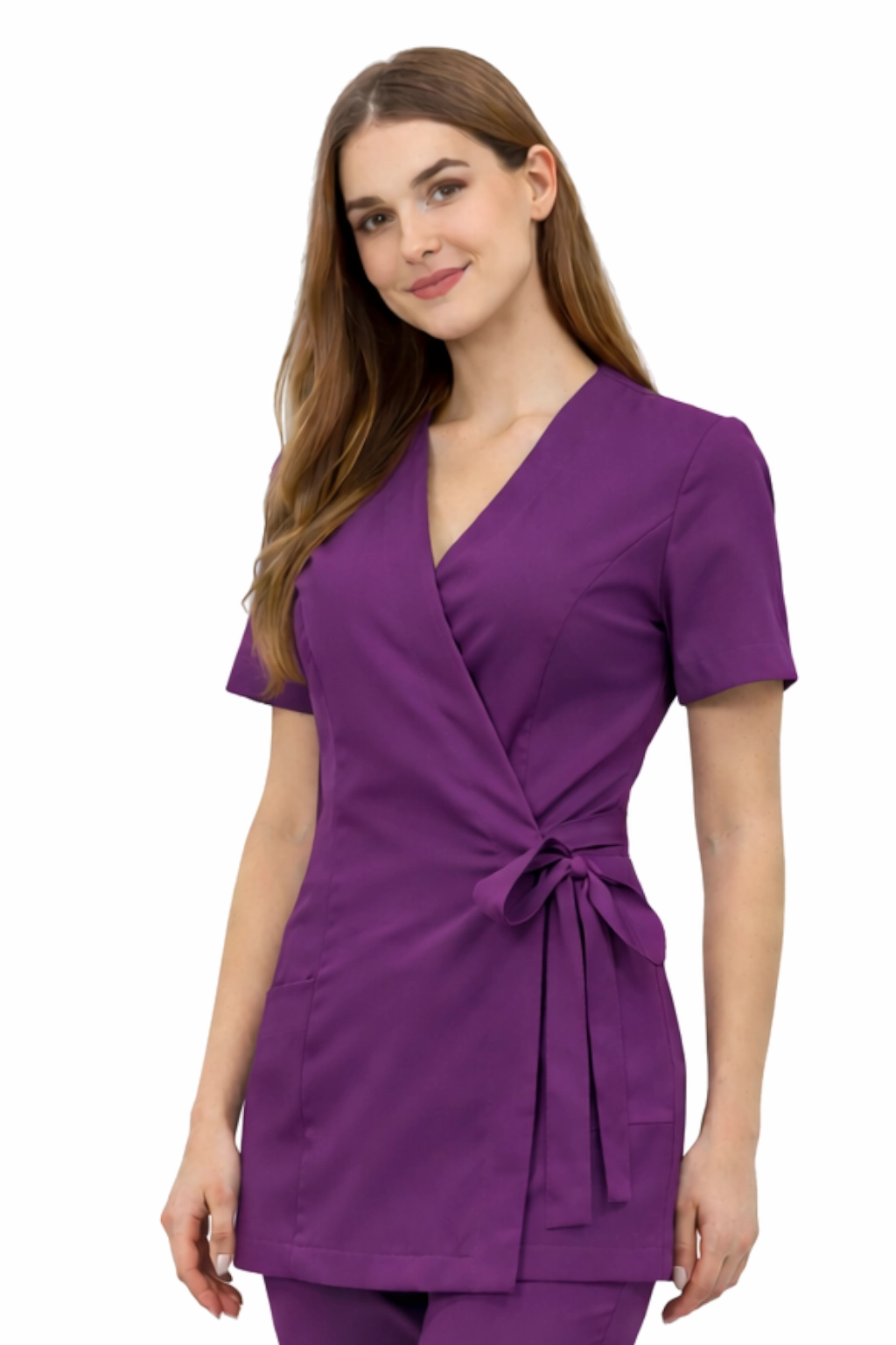 Il giubbotto avvolgente BASIC PREMIUM è una tunica moderna ed elegante, progettata per le donne che lavorano nel settore medico, cosmetico e della bellezza. Il modello unisce la funzionalità dell'abbigliamento da lavoro al taglio femminile e stiloso, che sottolinea la silhouette e garantisce comfort per tutta la giornata lavorativa.