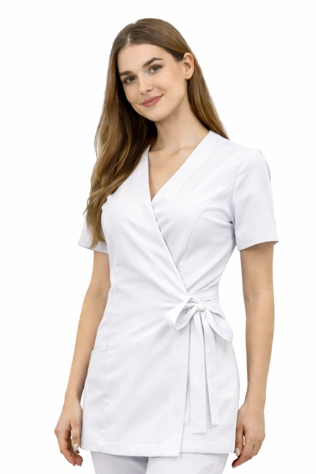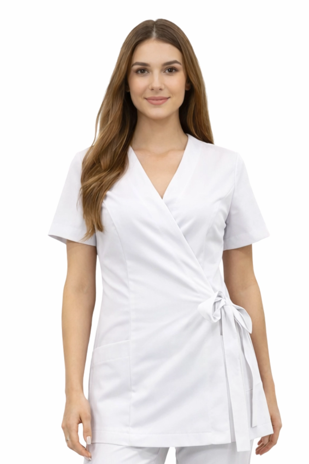 Il giacchino a portafoglio BASIC PREMIUM è una tunica moderna ed elegante creata pensando alle donne che lavorano nel settore medico, cosmetico e beauty. Il modello unisce la funzionalità dell'abbigliamento professionale con un taglio femminile e alla moda, che enfatizza la silhouette e garantisce comfort per l'intera giornata di lavoro. Grazie al suo design universale, la tunica si adatta perfettamente anche in altri ambienti di lavoro che richiedono un abbigliamento estetico e comodo - ad esempio nell'istruzione o nei servizi.