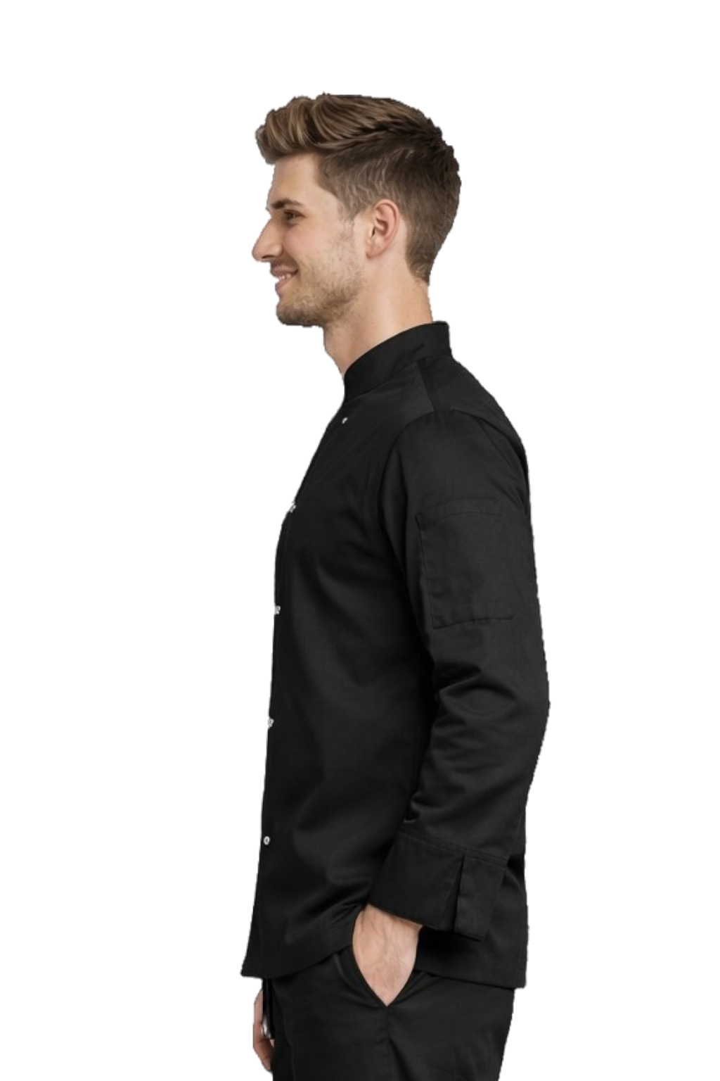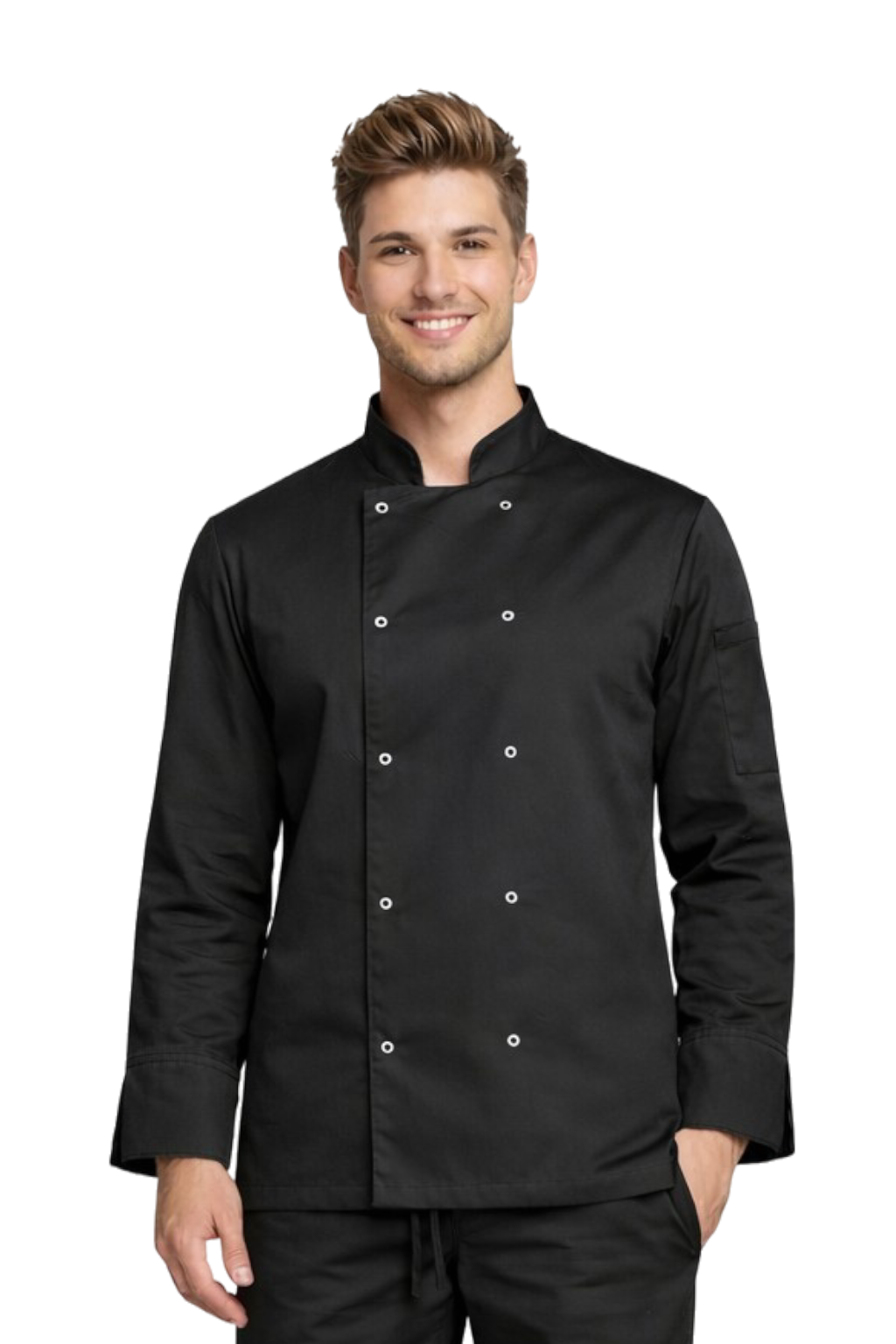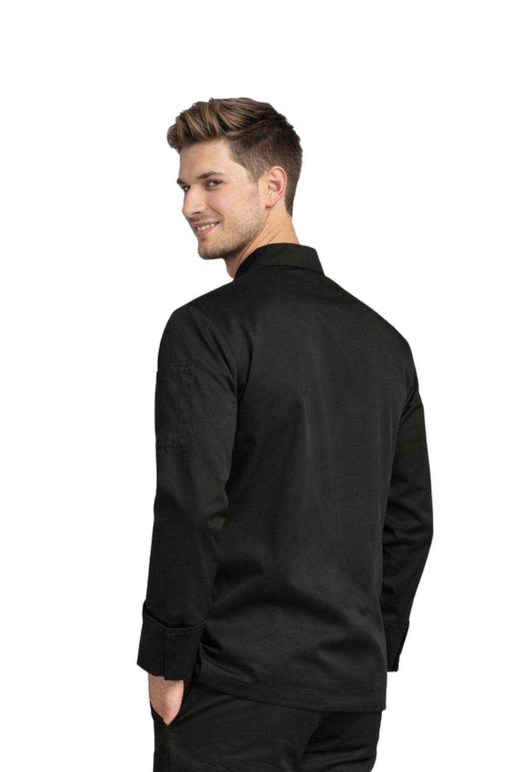 Giacca da cuoco nera con bottoni a pressione – elastica, manica lunga