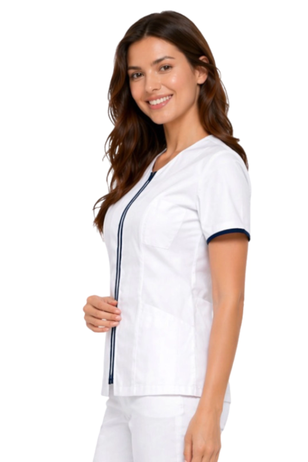 Il giubbotto medico cosmetico bianco con bordino blu navy è la combinazione ideale di eleganza e funzionalità. Creato pensando a infermiere, ostetriche e specialisti del settore beauty, questo modello unisce un design moderno a materiali di alta qualità. Il tessuto garantisce comfort per tutto il giorno, e l'intensità dei colori rimane a lungo, anche dopo diversi lavaggi. Inoltre, la pratica chiusura a zip facilita l'indossamento e lo svestimento del giubbotto. Una scelta eccellente per chi desidera sentirsi elegante e professionale al lavoro.