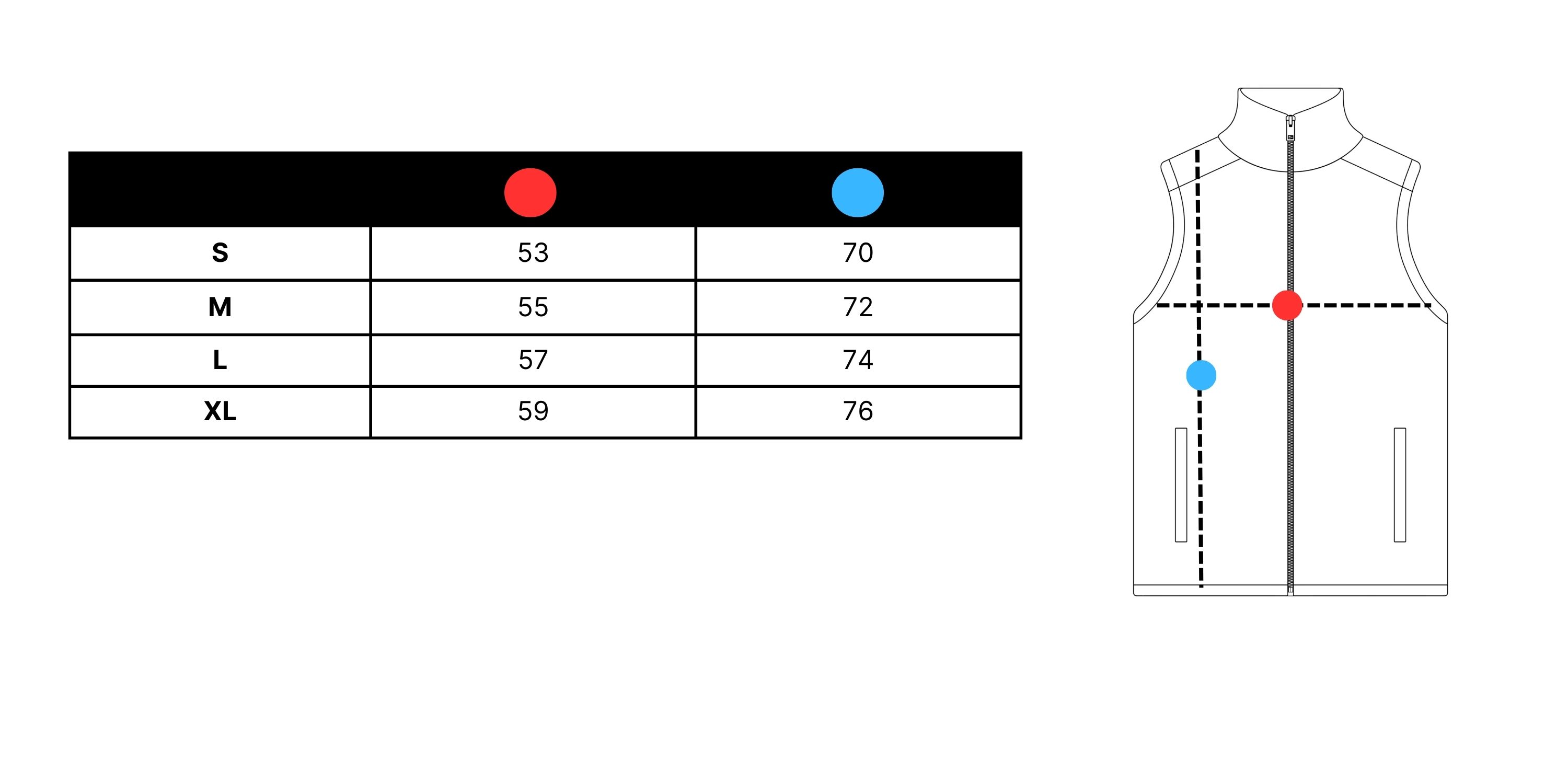 Il gilet ha una cerniera lunga e tre tasche laterali con zip, che facilitano lo stoccaggio di piccoli oggetti. Il materiale è elastico e confortevole, quindi il gilet senza maniche non limita il movimento. Il rivestimento interno in pile aumenta la comodità nei giorni freddi, e gli stopper aiutano a adattare meglio il modello alla silhouette.