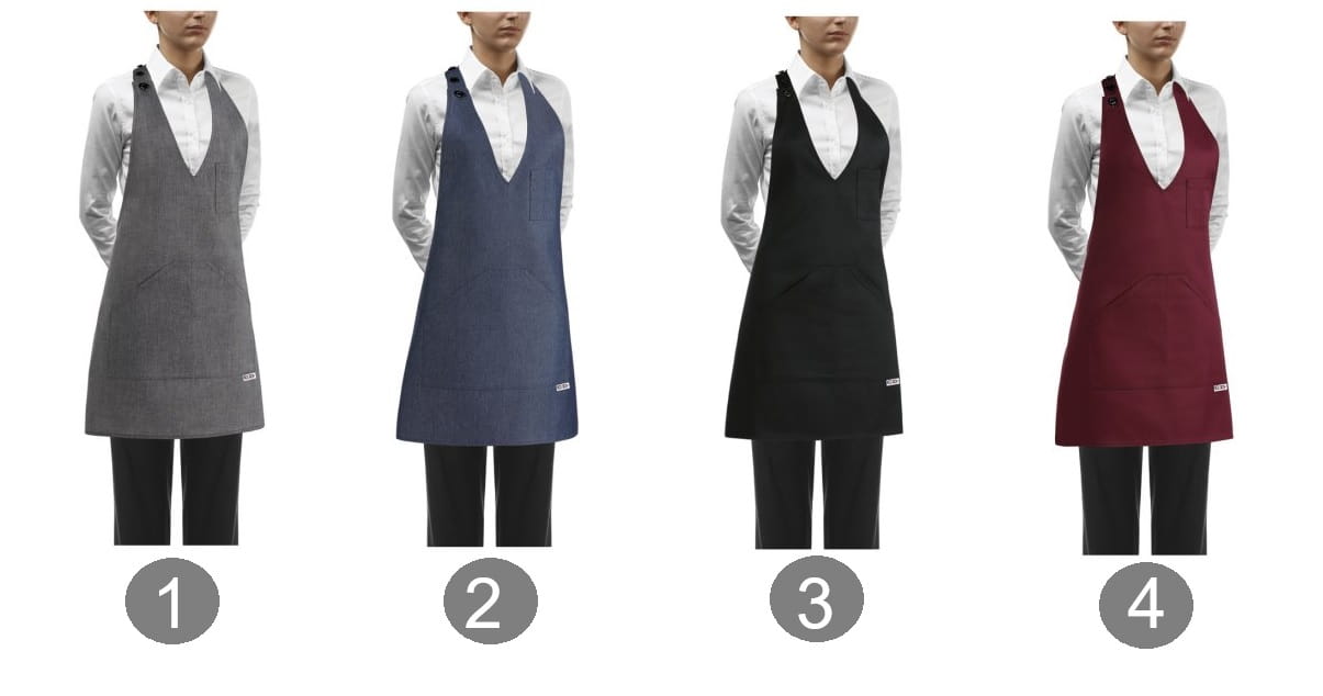 Il grembiule è dotato di un'ampia doppia tasca sul fondo e di una pratica tasca sul petto per un taccuino, una penna, utile nel lavoro di cameriere, barista, sommelier durante le ordinazioni.