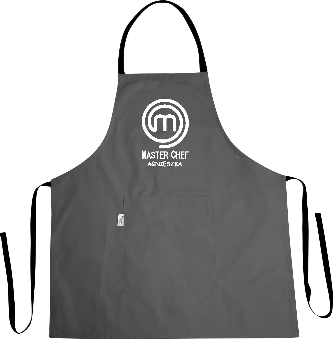 Grembiule da cucina MASTER CHEF + Il tuo nome è un accessorio pratico e di stile per ogni appassionato di cucina. Protegge efficacemente i vestiti da sporco durante la preparazione dei pasti e grazie alla personalizzazione diventa un elemento unico dell'attrezzatura da cucina.