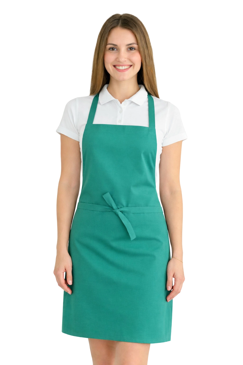 Il grembiule è fatto di una miscela di 50% cotone e 50% poliestere con un peso di 165-185 g/m². Per questo motivo è leggero, traspirante e allo stesso tempo resistente al lavaggio frequente. Può essere lavato fino a 65°C, permettendo di mantenere l'igiene e la freschezza. Il colore verde acqua rimane intenso anche dopo molti lavaggi, e il materiale non si ritira e non perde la sua forma.