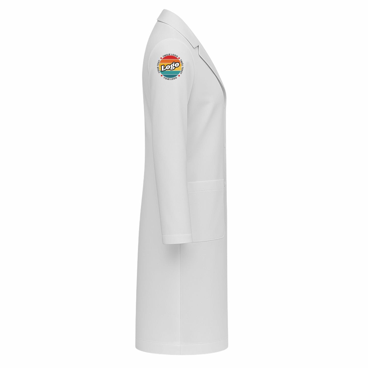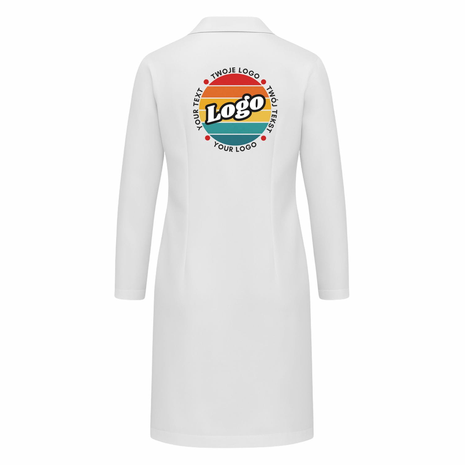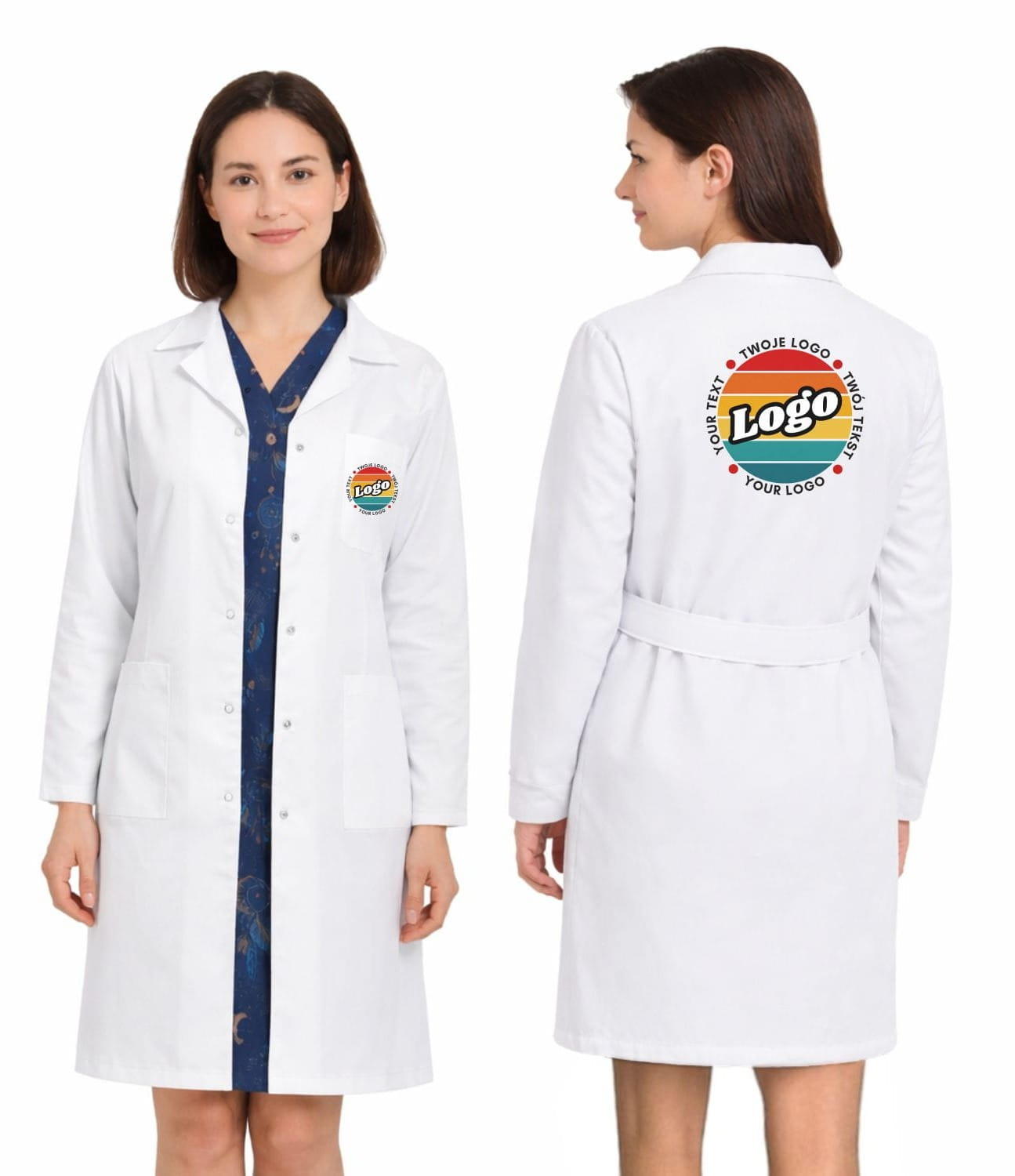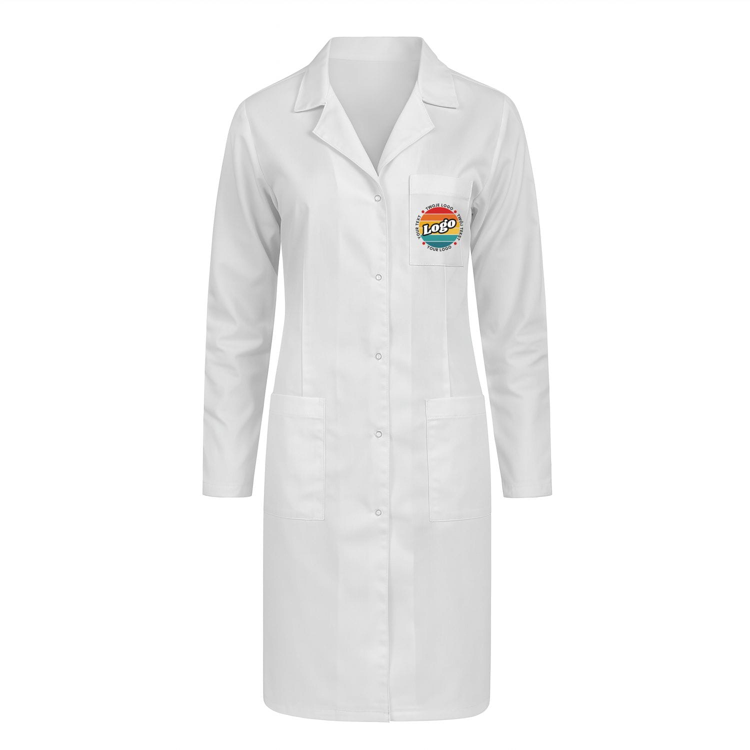 Grembiule da laboratorio da donna bianco neve con chiusura a scatto con la tua stampa personalizzata
