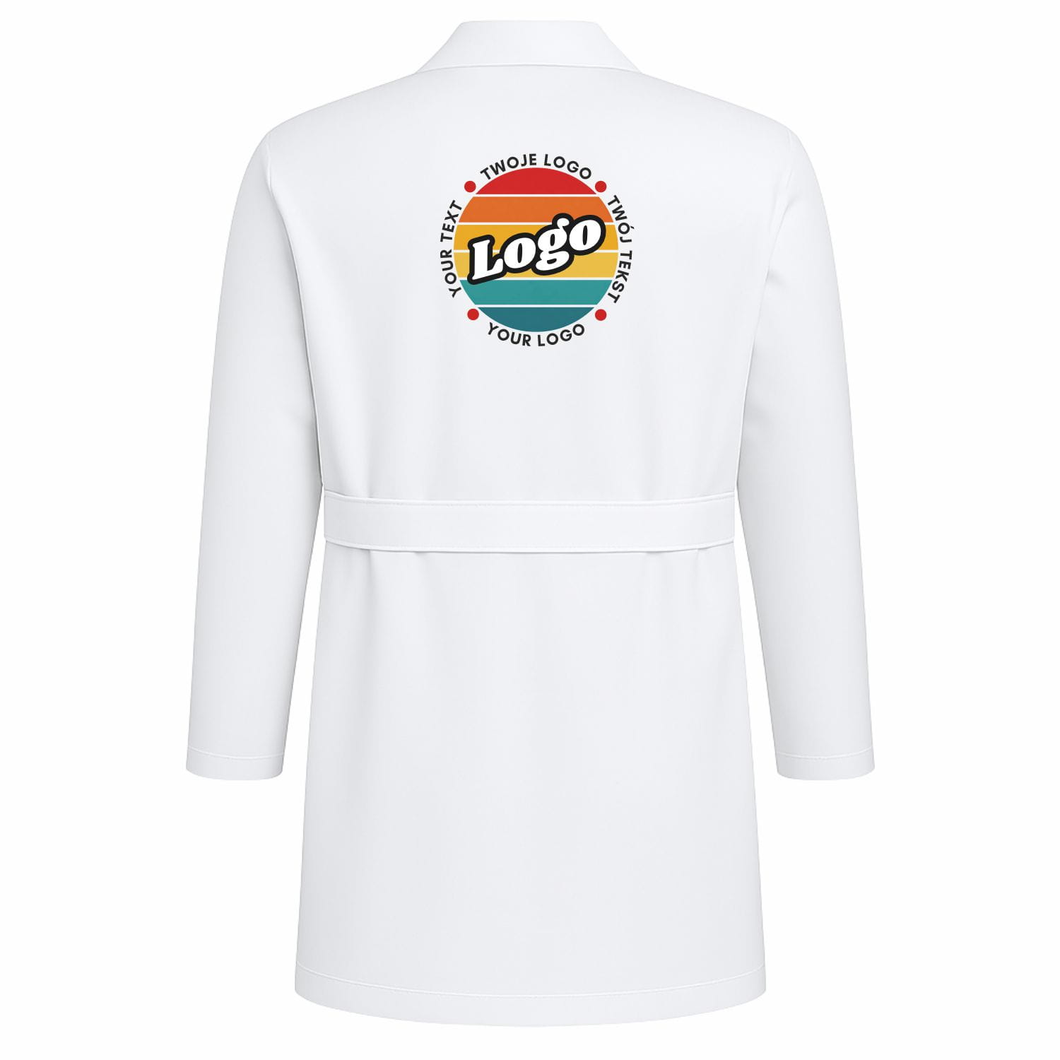 Grembiule da laboratorio da uomo bianco neve con bottoni con la tua stampa personalizzata