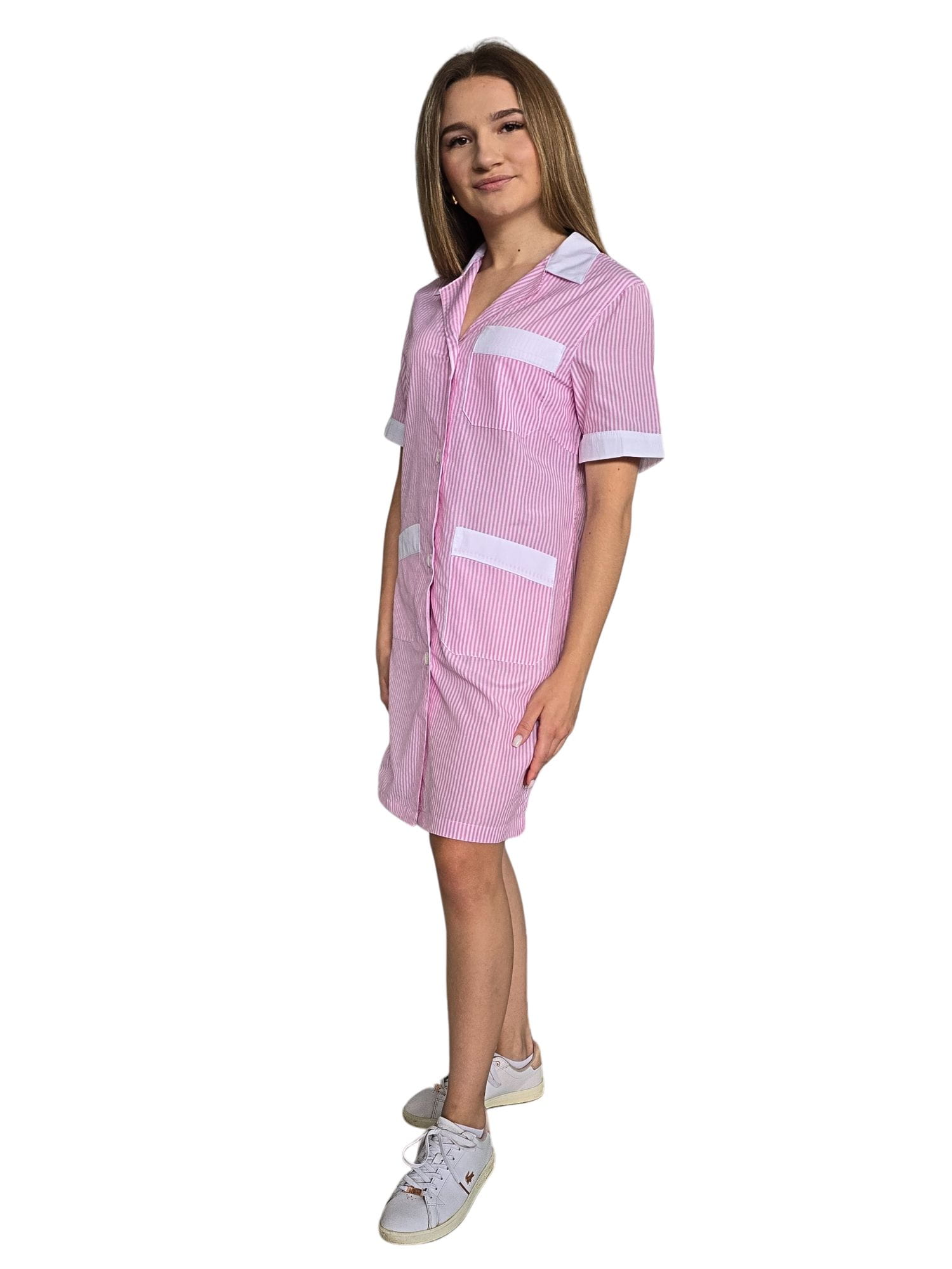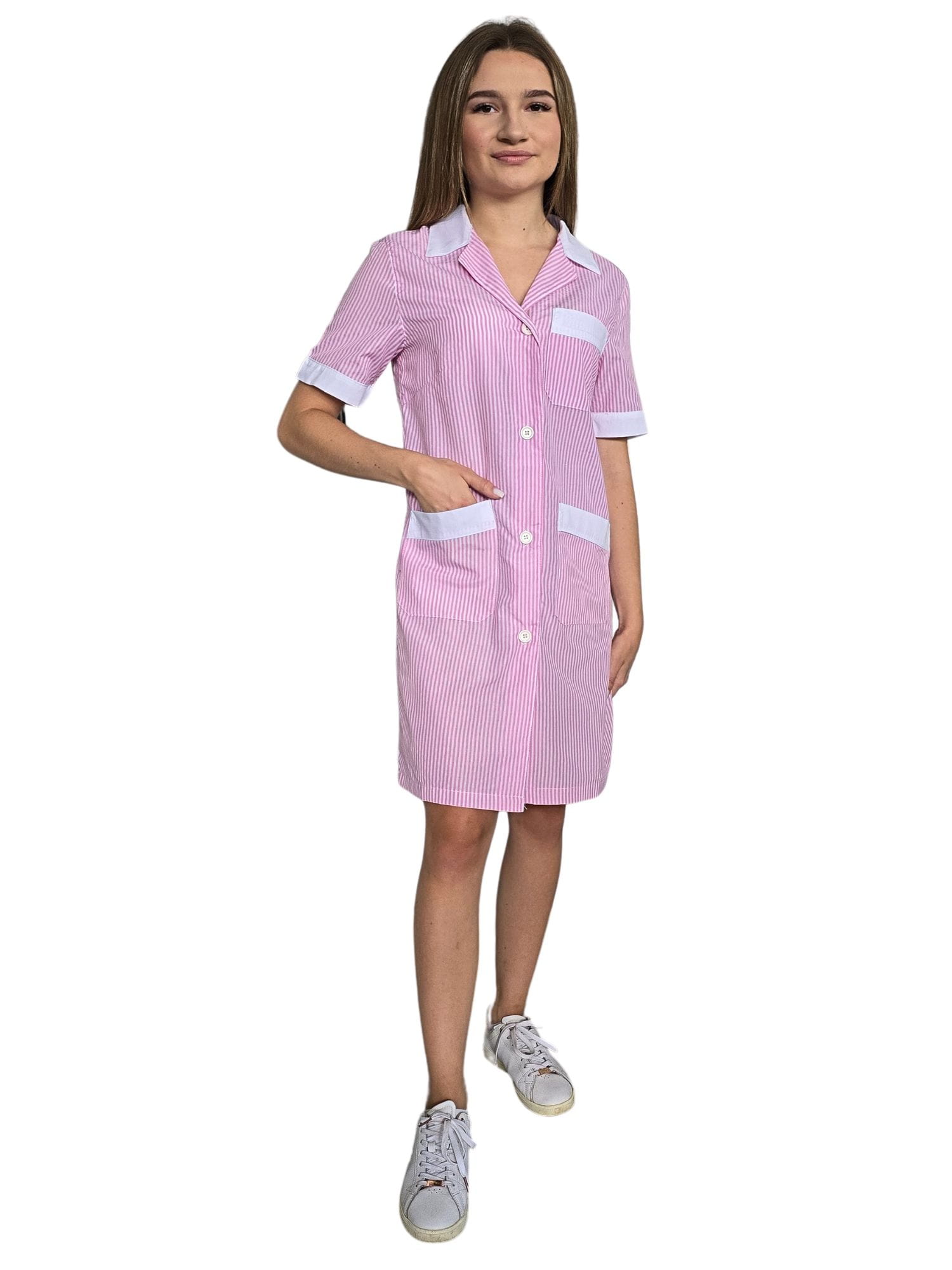 Il grembiule da lavoro a maniche corte da donna è un capo essenziale per ogni professionista. Creato con una leggera trama piatta e utilizzando filati tinti, questo grembiule non solo garantisce resistenza ma anche durata.