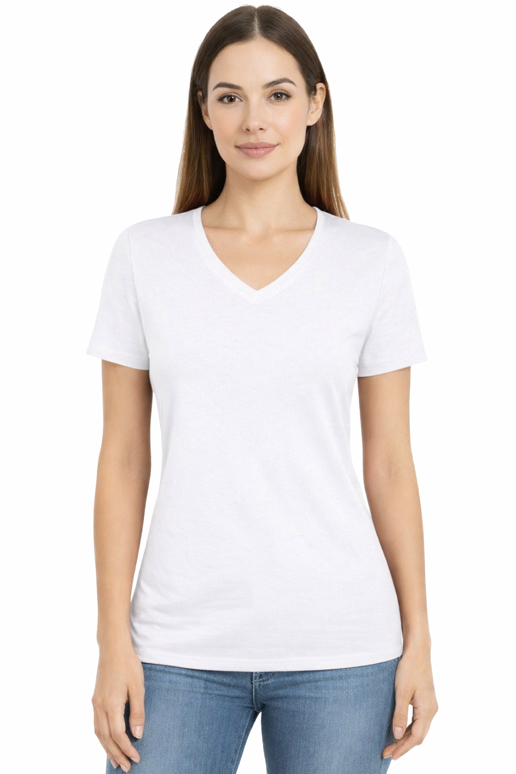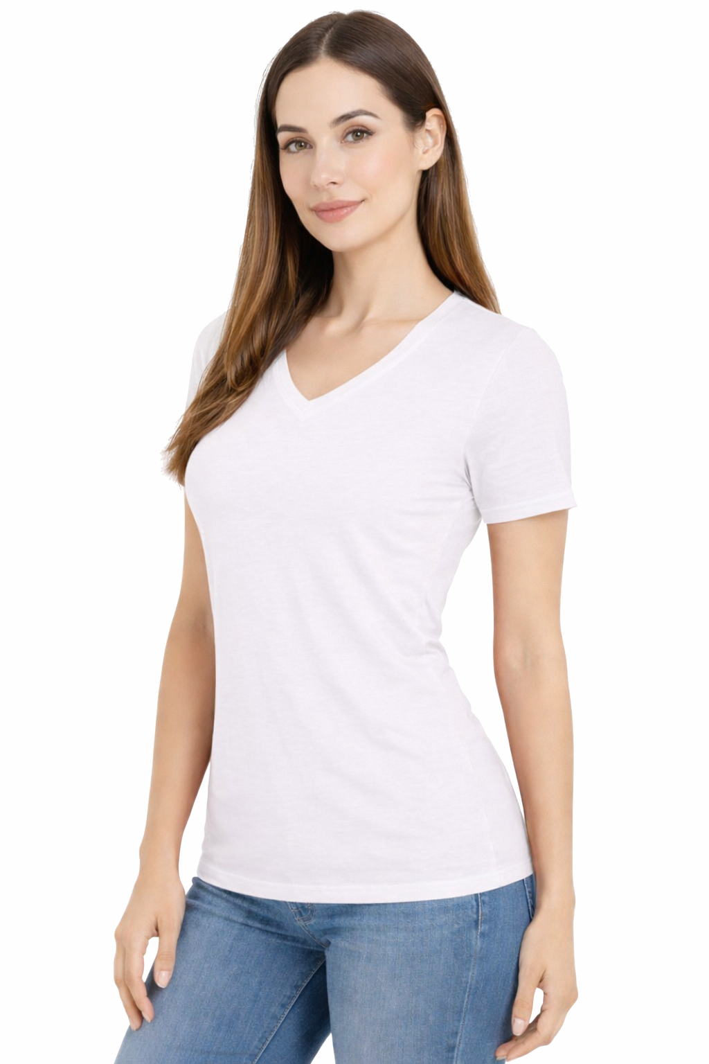T-shirt a maniche corte - T-shirt di cotone da donna con scollo a V colore bianco