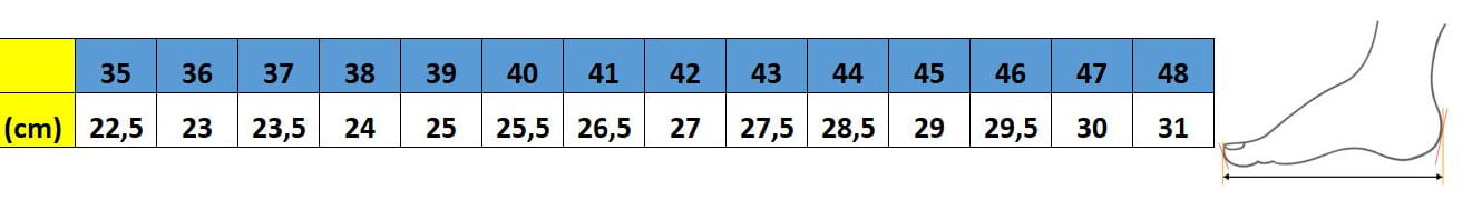 - Forma anatomica della suola (rotolamento della punta, supporto longitudinale, rientranza del tallone)