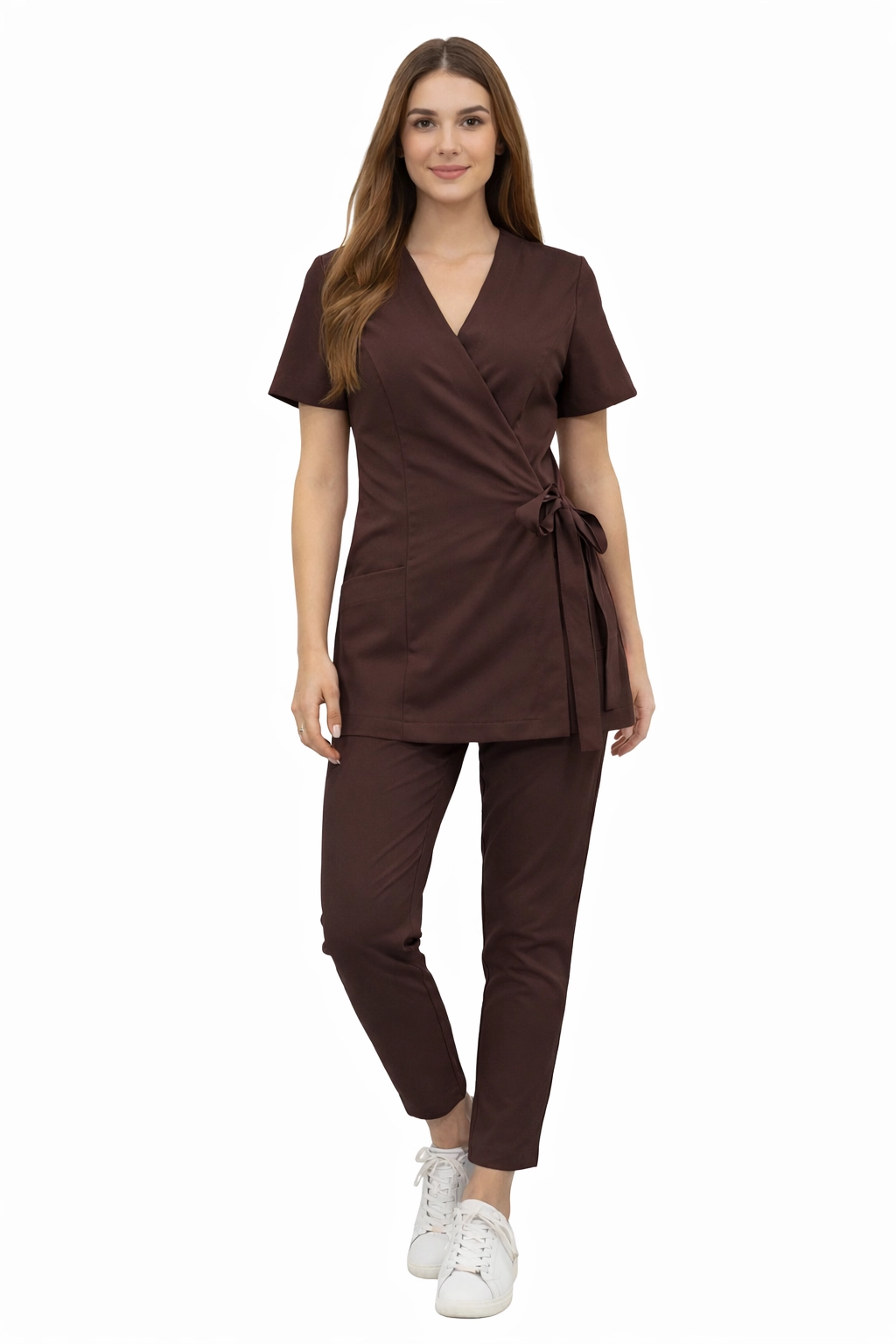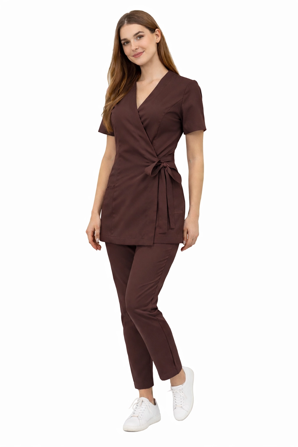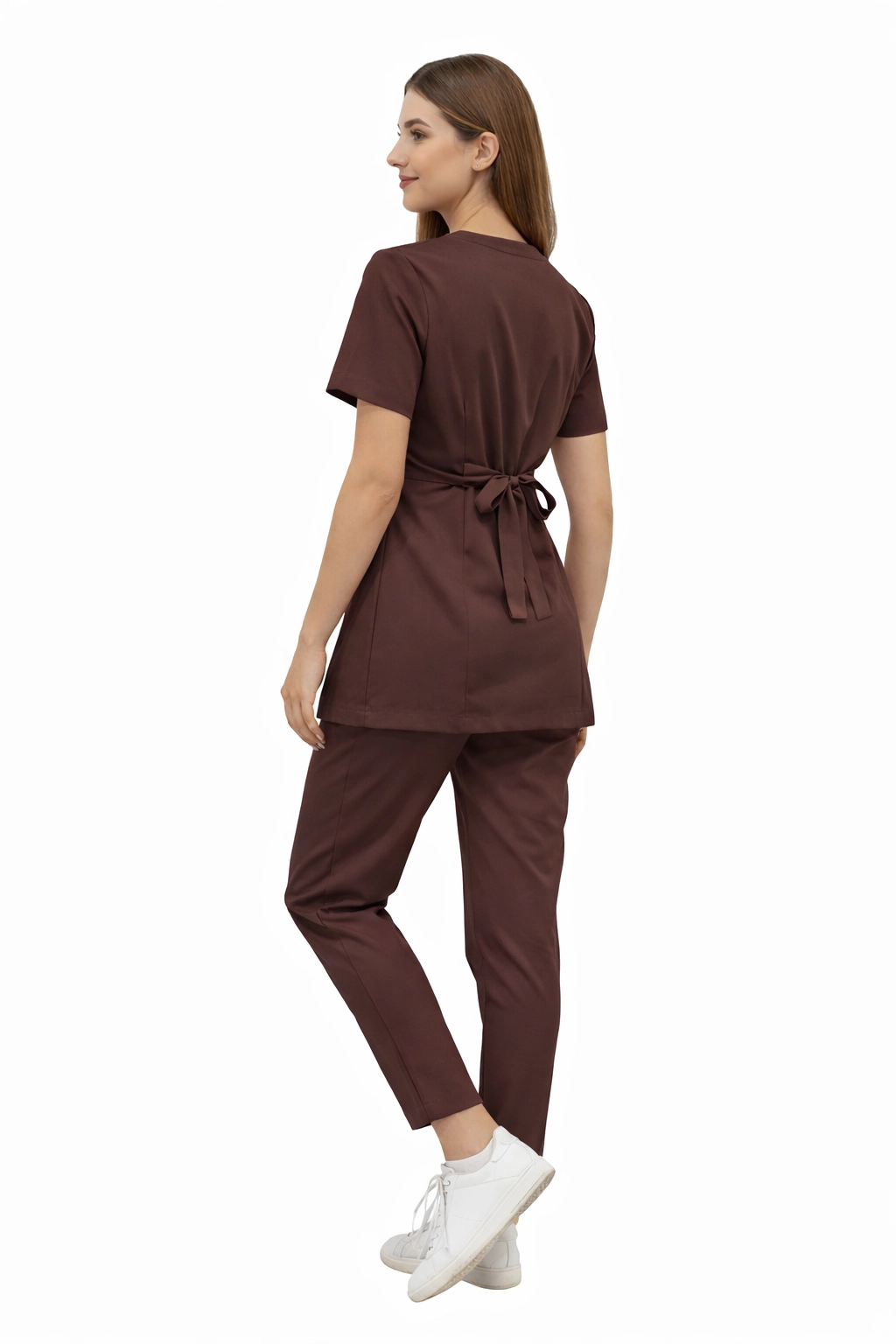 Set medico basic premium color cioccolato - divisa per donne nel settore medico e di bellezza