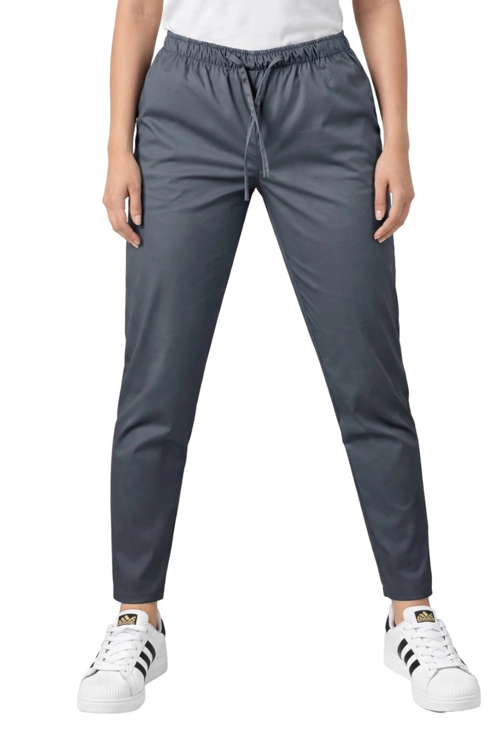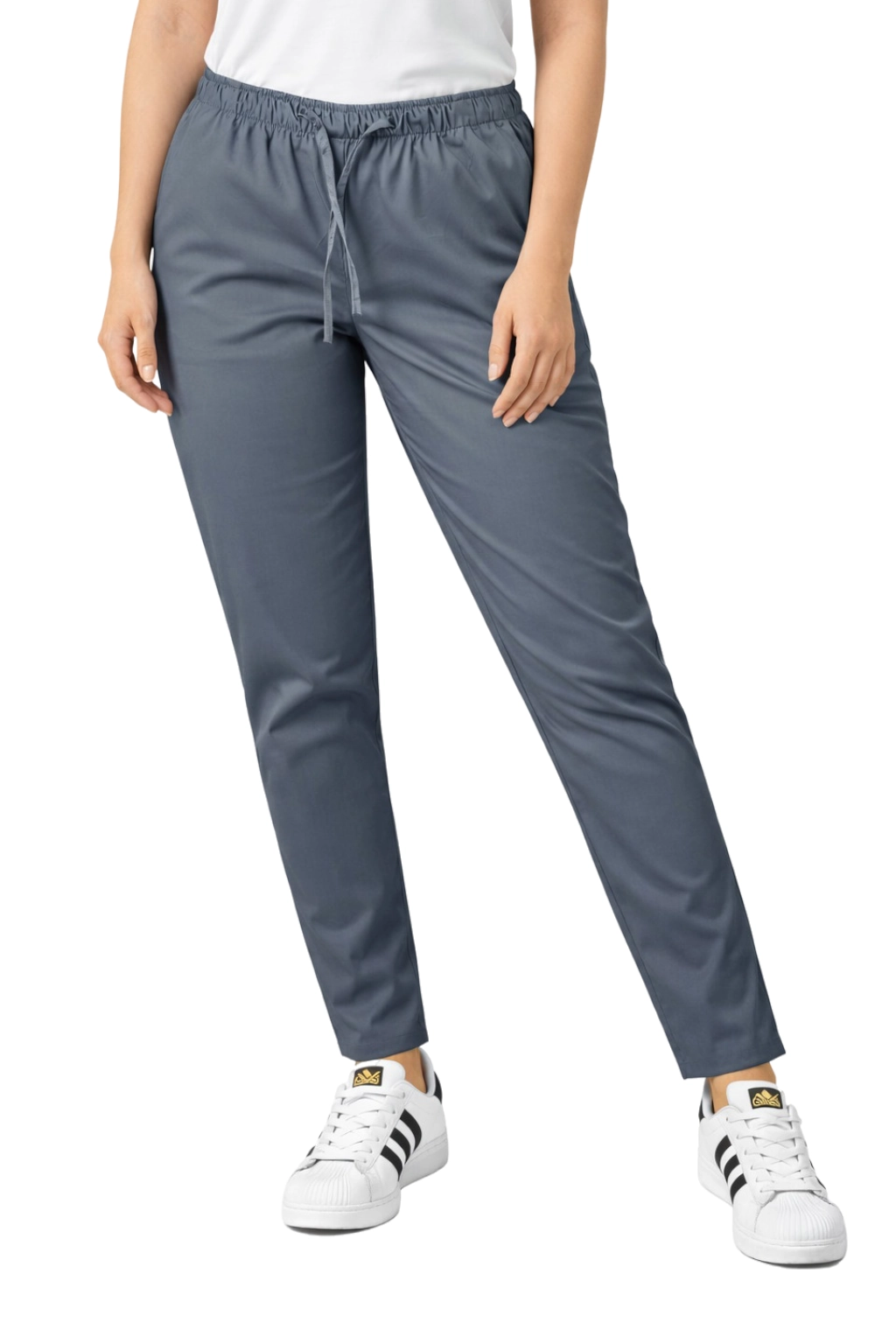 Il modello si distingue per le gambe leggermente affusolate e la cintura elastica con cordino, che garantiscono un perfetto adattamento e libertà di movimento. Due pratiche tasche laterali consentono di riporre gli accessori più necessari - dalle penne, alle piccole attrezzature mediche. Il colore grigio universale fa sì che i pantaloni si abbinino perfettamente con le bluse mediche colorate, consentendo di creare set coerenti e moderni.