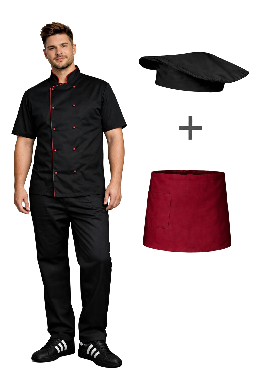 Il set è stato progettato pensando a funzionalità, comodità e conformità al dress code del mondo della ristorazione.