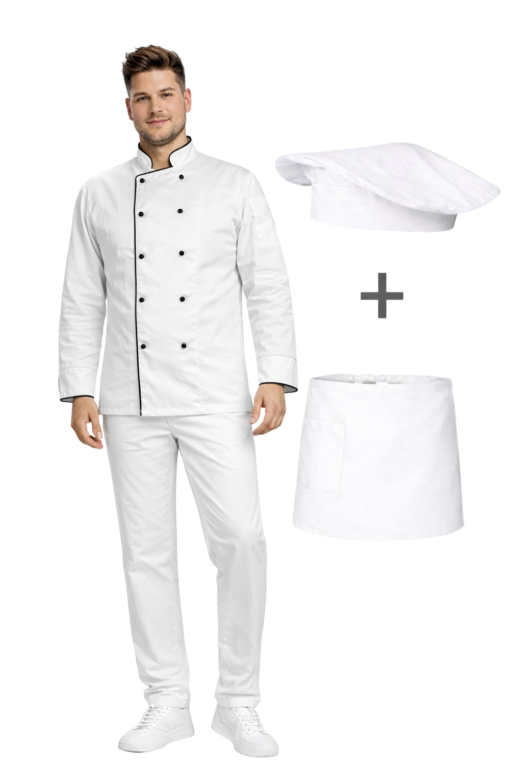 L'uniforme per cuoco / chef è un set completo di abbigliamento gastronomico che soddisfa i più alti standard applicabili nelle cucine professionali. Un abbigliamento da lavoro ordinato, pulito ed estetico genera fiducia nei clienti e sottolinea il professionismo del personale gastronomico.